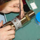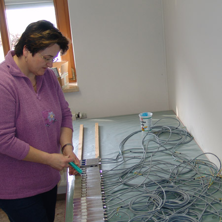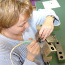 ![]() Interne Verdrahtung mit CU-Lackdraht | ![]() | ![]() Abgleich | ![]() | ![]() Verbindungslitzen einziehen und verlöten | ![]() | ![]() Kalibrieren | ![]() | ![]() Aufnehmer vergießen |